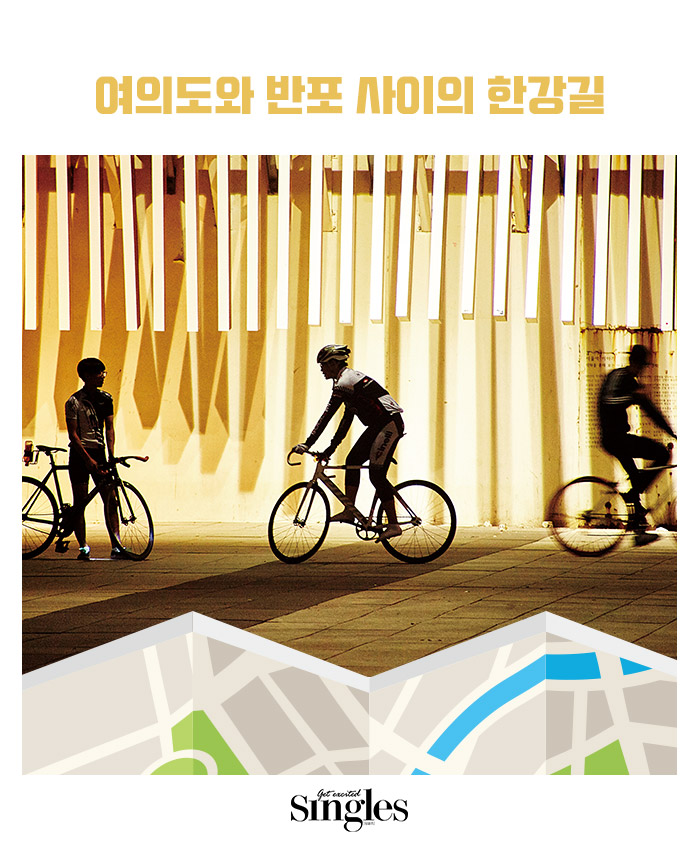 여의도와 반포 사이를 잇는 한강길은 훈훈한 남자들이 10초마다 한 번씩 지나갈 정도로 ‘훈남 노다지’다. 자전거나 스케이트보드를 타거나 규칙적으로 조깅을 하는 남자들을 쉽게 포착할 수 있다. 뜨거운 낮보다는 선선한 바람이 부는 평일 저녁 8시부터 11시까지, 주말엔 저녁보다 이른 아침이나 낮 시간대에 괜찮은 남자들이 많다. 여의도 색공원이나 반포 달빛광장, 뚝섬유원지 X게임장에 훈남들이 가장 많이 출몰하는 이유는 이곳에 트릭을 연습할 수 있는 넓은 공터가 있기 때문이다.