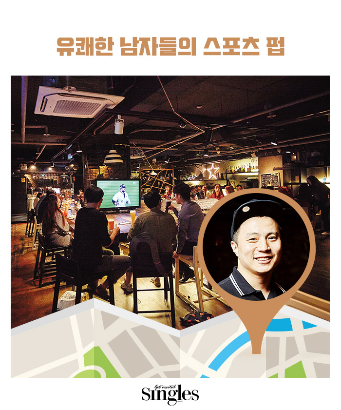 평일 저녁의 스포츠 펍은 늘 마음을 즐겁게 한다. 하루 종일 고된 업무에 치여 힘겨운 시간을 보낸 후 스포츠 경기를 볼 수 있는 펍에서 마시는 시원한 맥주 한 모금은 그날 받은 스트레스를 한꺼번에 날리기에 충분하다. 스포츠 좋아하는 남자는 대개 사람도 좋아하고, 사람들과 어울리는 것도 좋아한다. 유쾌한 남자는 매력적이다. 단, 그날 응원팀이 경기에서 지지만 않는다면.