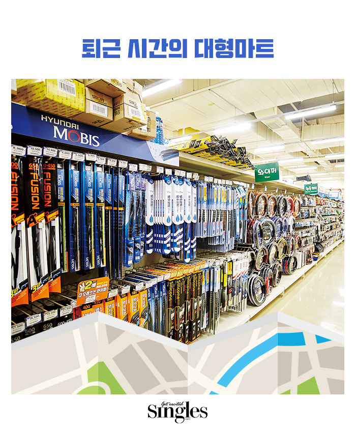 “꼭 사야 할 것들만 얼른 사서 가는 편이지만, 만약 시간이 넉넉한 날이라면 자동차 용품 코너부터 먼저 갑니다. 굳이 살 물건이 없더라도 구경하는 재미가 쏠쏠하거든요. 그런 다음 완전 조리된 식품을 카트에 담고 주류 코너로 가 맥주 식스 팩을 사죠.” 박주영(31세·통신업 기획팀)