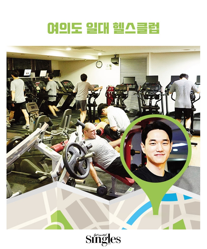 이 기사의 가장 중요한 전제는 이것이다. 단순히 ‘남자가 많은’ 곳이 아니라 ‘괜찮은 남자가 많은 곳’이어야 한다. 그런 의미에서 바쁜 일상 속에서도 온전히 자신만을 위해 시간을 투자하며 몸을 단련하는 남자는 언제나 섹시하다. 그들은 몸만큼 생각도 건강하지 않을까? 특히 늘 시간에 쫓기며 사는 직종(이를테면 증권맨 같은)의 남자가 시간을 쪼개 운동을 하는 모습은 존경스럽기까지 하다. 여의도 일대의 헬스장은 아침과 점심 시간, 늘 훈훈한 남자들로 넘쳐난다.