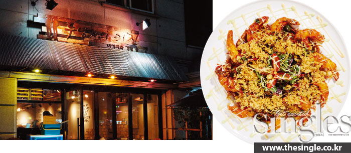 레스토랑에 가서 밥 먹기엔 너무 거하고, 술집에 가기엔 뭔가 아쉬울 때 가면 좋을 곳이다. 식사를 하든, 술을 마시든 부담 없이 메뉴를 고를 수 있다. 일반 테이블과 바가 고루 있지만 10개 남짓으로 규모가 작은 편. 평일에는 느지막이 퇴근해 출출한 배를 채우러 오는 사람이 많다. 저녁 8시에서 10시 사이는 손님이 가장 많은 시간. 로제 소스에 매콤한 맛을 가미한 ‘레드크림 오돌뼈’와 새우튀김에 깐풍 소스를 얹은 ‘깐풍새우’가 가장 인기 있다.