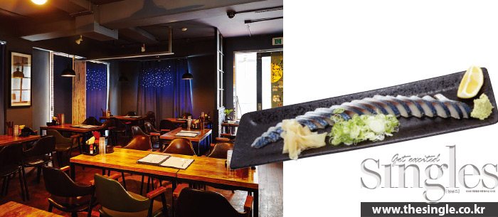혼자 가도 전혀 부담 없는 이자카야다. 모든 메뉴는 1인분 기준의 음식을 내는 것을 원칙으로 한다. 손님에게 적은 양으로 임팩트 있는 맛을 선사하겠다는 자신감이다. 이곳에서는 사케, 와인 등 100여 종이 넘는 술을 맛볼 수 있으며 주종에 맞는 요리를 준비한다. 진정 애주가를 위한 곳이다. 본격적으로 일본 술을 맛보고 싶은 사람이라면, 전채 요리인 나가이모 소우멘을 권한다. 위장에 좋은 마를 채 썰어 낸 요리로 아삭한 식감이 좋고 끝맛이 개운하다. 혼자 앉아도 좋은 바 테이블이지만 공간 자체가 널찍해 편안하다.