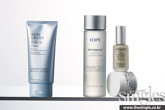 (왼쪽부터) 에스티 로더 퍼펙틀리 클린 멀티 액션 폼 클렌저 150ml 3만5000원, 아이오페 바이오 에센스 인텐시브 컨디셔닝 168ml 6만원대, 엘보라리오 카모마일 적포도 세럼 30ml 5만4000원, 키엘 울트라 훼이셜 크림 50ml 3만9000원.