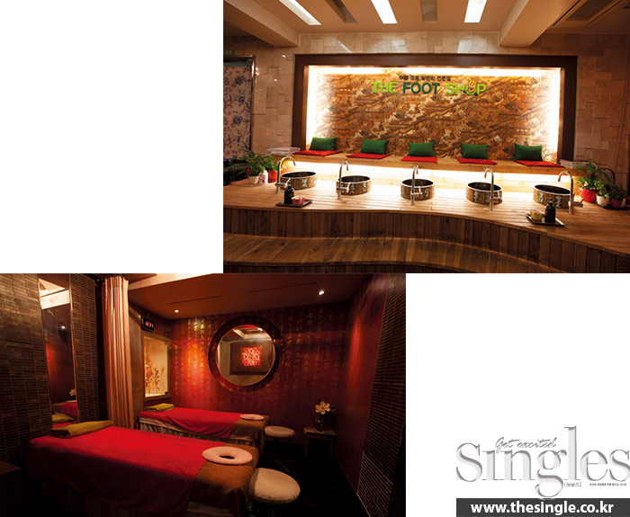 국내 최초 풋 스파 전문 숍인 더풋샵은 합리적인 가격으로 다양한 프로그램의 풋 스파를 만날 수 있다. 발만 하는 마사지부터, 종아리, 무릎 등 하체를 부위별로 나눠 관리하는 프로그램으로 특화한 곳.