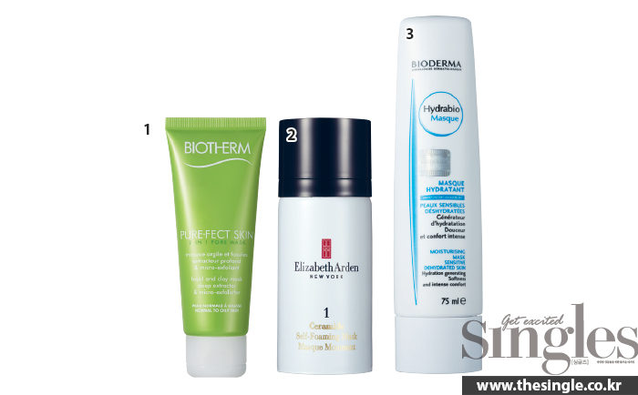 모공보다 2배 더 작은 사이즈의 미네랄을 함유한 규조토 알갱이가 피부의 각질을 제거하는 비오템 마스크. 화이트 클레이가 미세한 피지와 노폐물을 흡착해 모공 속 깊숙한 곳까지 깨끗하게 정리한다. 엘리자베스 아덴의 마스크는 바르는 즉시 가벼운 거품이 일어나는 게 특징. 각질을 부드럽게 제거함과 동시에 효소가 작용해 표면의 불순물까지 효과적으로 씻어낸다. 각질을 정돈하고 각질층에 자리한 수분 증발을 막는 바이오더마의 마스크는 피부세포 사이의 순환을 활발하게 만든다.