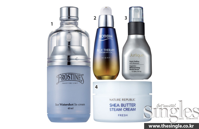겨울에도 번들거리는 겉 피부 때문에 고영양의 크림을 바르는 게 꺼려지는 것이 사실. 이럴 땐 세럼과 크림의 텍스처를 바꿔 사용하면 된다. 고보습 영양 성분이 많으면서도 크림과 비교해 텍스처가 가벼운 세럼의 특성을 활용하는 방법. 필요한 수분과 영양 성분은 세럼 단계에서 흡수시키고, 크림은 세럼의 영양분이 날아가지 않도록하는 보호막으로만 사용한다고 생각하면 된다. 유분이 많은 피부라면 크림은 아예 생략하고 리치한 세럼을 여러번 덧바르는 것도 방법이다. 마지막 단계에서 따뜻하게 데운 손바닥으로 양볼을 감싸듯 눌러 세럼을 완벽하게 밀착시키도록.