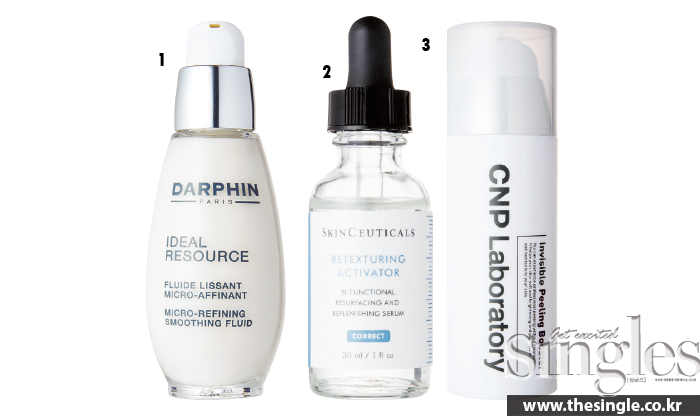모공이 눈에 띈다면 피부 회복력이 더뎌 각질이 쌓여 있는 것. 이로 인해 피부가 거칠어져 모공이 넓어 보이는데 이때 필요한 게 바로 필링 효과가 있는 부스터, 액티베이터 제품이다. 피부에 부담을 주지 않고 각질을 제거하면서 NMF, 히알루론산 성분이 즉각적으로 모공에 수분을 채운다.