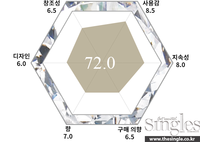 평점은 창조성, 사용감, 지속성, 구매 의향 부문, 향, 디자인 부문에서 각각 10점 만점으로 평가한 뒤 100점 만점으로 환산한 점수.