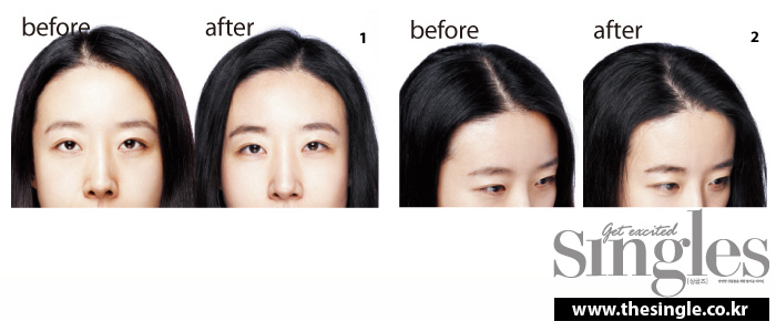 2 홍해 갈라지듯 쩍 갈라져 있던 가르마 때문에 숱이 없어 보였는데 자연스럽게 머리가 양쪽으로 흩어져 훨씬 숱이 많아 보인다.