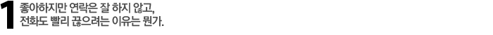 Re 정말 좋아하는데 빨리 전화를 끊으려 한다면 지금 있는 곳에서 최선을 다하고 싶기 때문이다. 그게 회사든 당구장이든 술집이든 그 순간의 승부에 집중하기 위해서다. 하지만 초기에는 여자의 마음을 얻는 것이 게임이나 당구보다 중요하기 때문에 빨리 전화를 끊지 않는다. 물론 귀찮아졌거나 마음이 식었을 때도 전화를 빨리 끊는다. 김윤수