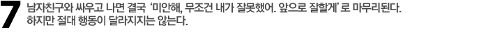 Re 그저 싸움을 피한 것뿐이지 진심으로 미안하다고 생각하지 않기 때문이다. 남자는 ‘그래, 그래. 내가 잘못했어. 미안해’라고 하면서 상황을 덮는다. 하지만 자신의 행동을 바꿔야 한다고 는 생각하지 않는다. 진심으로 미안하다고 생각하지 않는 이상. 김윤수