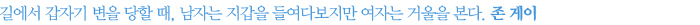 Re 남자는 감정을 양이 아니라 질의 문제로 여긴다. 선물도 자질구레한 것 여러 번보다 큰 거 한 방을 선호한다. 열 번 잘해주기보다 한 번 완전 잘해주면 된다고 생각한다. 김영진