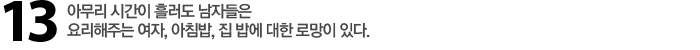 Re 부모님과 함께 살다 장가간 남자는 습관 때문이고 혼자 자취를 오래 한 남자는 사 먹는 밥이 지겨워서다. 어쨌든 맛 없으면 목 안 멘다. 아내가 해주는 밥은 남자들의 결혼에 대한 로망 중 하나다. 김영진