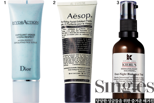2 뿌리면 각질이 제거된다, EI 솔루션즈 사이언스 베타 필 클렌징 후 얼굴 전체에 뿌린 뒤 마사지하듯 고루 문지르고 나서 헹궈낸다. AHA 성분, 파파야 추출물이 각질을 제거한다. 100ml 5만2000원.