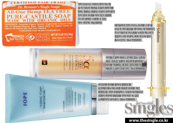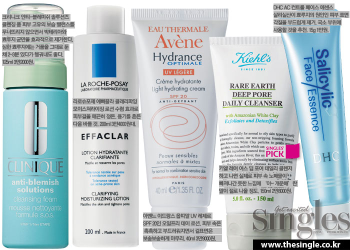 함부로 짜거나 손으로 건드리지 말고 항균, 항염 기능을 갖춘 수분 에센스만 가볍게 흡수시킨다. 붉은 뾰루지는 자외선 에너지를 더 많이 흡수해 멜라닌 색소가 모여 흉터로 남을 확률이 높으므로 오일프리 SPF 모이스처라이저 또한 필수. 코코아 버터, 시어 버터, 미네랄 오일 등이 들어 있어 모낭을 막거나 피지선을 자극해서는 안 되므로 이런 성분을 배제한 논코메도제닉 제품인지 확인하면 더욱 좋다.