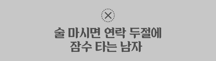 평상시에는 그렇게 연락도 자주 하고 항상 여친의 스케줄에 맞춰 생활하는 자상함이 다 무슨 소용인가? 술자리에 가면 저녁 7시부터 다음 날 새벽 6시까지 잠수 타는 게 습관인 남자와는 미래가 없다. 폭력적으로 변하는 것도 아니요, 술값을 호기롭게 내는 습관이 있는 것도 아니요, 심지어 2차로 룸살롱에 가는 것도 아닌데, 왜 안 될까? 습관적으로 잠수를 타는 남자들은 술을 이기지 못할 정도로 폭음을 하고 잠수를 타는 것에 대해 고칠 생각이 없거나 일종의 술자리 루틴으로 여긴다. 늘 그래왔기 때문에 앞으로도 늘 그럴 것이다. 여자친구가 아무리 걱정하고 변화를 요구해도 이미 그에게 노력할 마음은 없다. ‘기억이 안 난다’는 말로 지난밤의 과오를 은근슬쩍 넘어가려 한다. 뜬눈으로 지새며 꼴딱 밤을 새고 자신을 걱정한 여자에게 미안함 따윈 없다. “평소엔 자상하고 성실한데 술만 마시면 그래”라는 말로 그를 억지 춘향으로 이해하는 순간, 앞으로 펼쳐질 수많은 잠수의 나날을 기대해도 좋다. 연락 두절과 잠수도 어김없이 주사다.