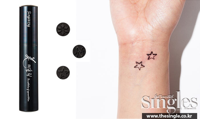 워터프루프 아이라이너 원료로 만든 타투 스탬프는 피부에 자극 없이 안전하고 지속력이 긴데다 바로 바로 찍을 수 있기 때문에 1초 타투라 불릴 만하다.