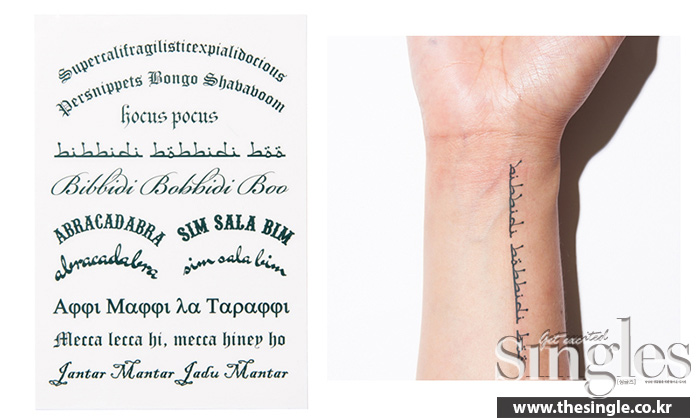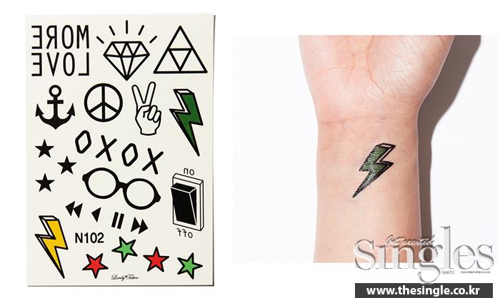 레터링부터 올드 스쿨까지, 없는 게 없는 타투 스티커. 요즘에는 형광 제품까지 등장해 낮밤 구분 없이 멋을 뽐낼 수 있다!