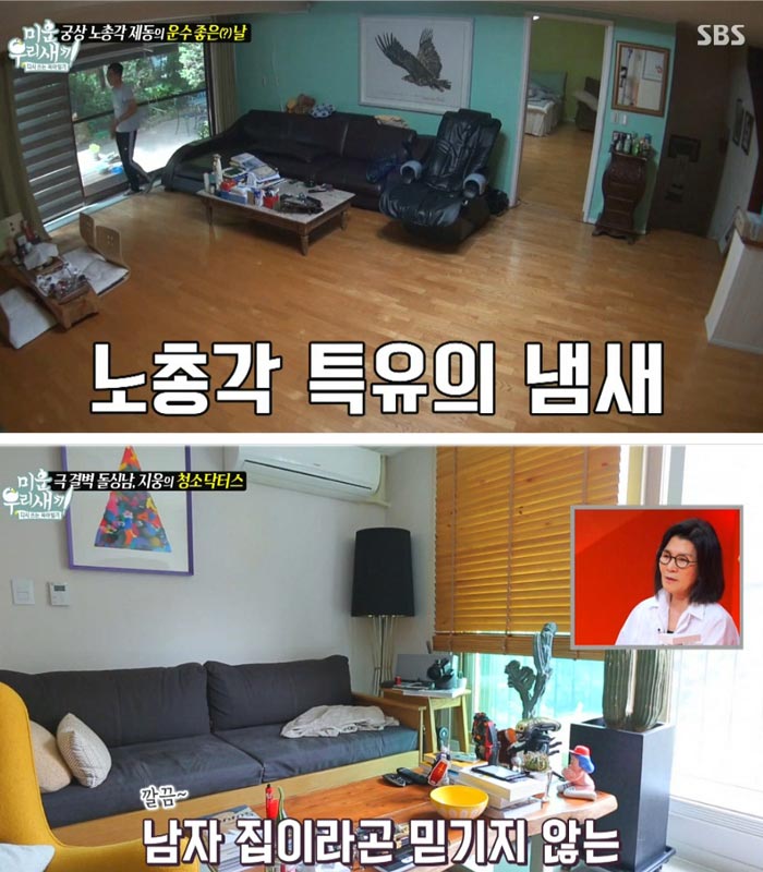 이거 뭐야 이상해 4) ‘혼자 사는 남자’는 뭐든 안 하고 못 하는 게 디폴트인가? 깨끗한 싱글남의 집을 보며 “남자 집이라곤 믿기지 않는” 같은 말을 하면서도 뭔가 이상하다는 걸 못 느끼는 걸까. (엄마, 쟤들 좀 이상해!)