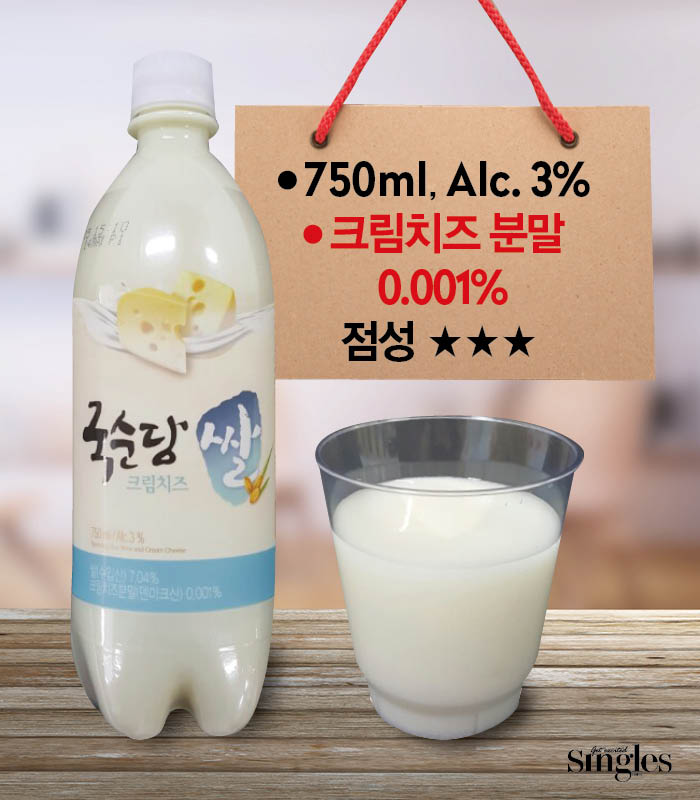 라벨만 봤을 때는 ‘아침 햇살’ 음료가 연상됐다. 그런데 뚜껑을 열고 잔에 따르면서 좀 놀랐다. 다른 막걸리에 비해 찐득찐득한 점성이 강하게 느껴졌다. 맛은 흡사 저지방 우유…? ‘크림치즈’라는 이름만 들었을 때는 치즈와 막걸리가 안 어울릴 거라고 생각했지만, 의외로 맛있었다. 치즈의 부드러운 맛과 쌀이 만나 고소하다.