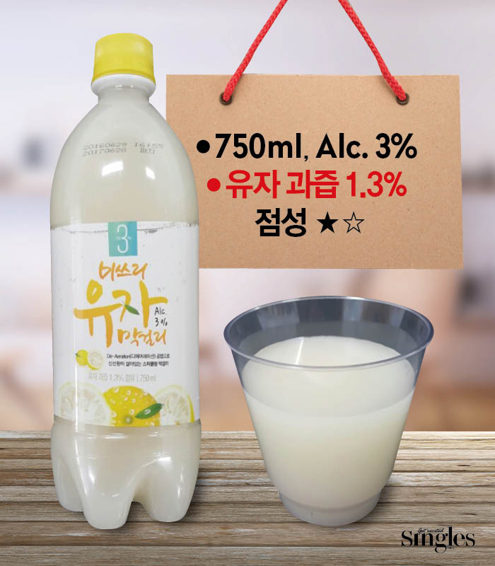 유자 맛도 막걸리 맛도 아닌 그 무언가. 그냥 맛없는 음료수 같다(라고 쓰면서 “맛없는”에 형광펜으로 하이라이트 표시를 하고 싶어졌다). 막걸리를 싫어하는 내가 그나마 막걸리의 필수요소라고 생각하는 ‘탄산감’이 제일 잘 느껴지긴 했다. 그것 말고는 기억에 남는 부분이 딱히 없는 맛.