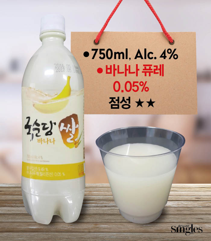 나는 자칭 ‘바나나 마니아’다. 바나나도 좋아하고, 바나나 우유, 마이쮸 바나나 맛도 좋아한다. 평소 달달한 종류의 술, 섞어 마시는 술을 좋아하는 내게 바나나 향이 물씬 나는 이 막걸리는 굉장히 인상적이었다. 막걸리를 자주 마시는 편은 아니지만 이 막걸리는 맛있다.