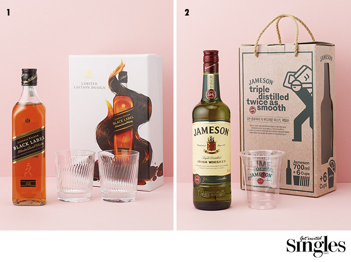 위스키의 시작은 스코틀랜드가 아니라 아일랜드다. 그리고 제임슨은 아일랜드는 물론 전 세계에서 가장 많은 사랑을 받는 아이리시 위스키. 한곳에서 세 번이나 증류를 해 맛이 부드럽다. 패키지 안에는 6개의 플라스틱 컵이 들어 있는데, 친구들과 함께 하는 홈 파티 때 선물용으로 가져가기 안성맞춤. 오렌지 주스를 적당량 섞는 것만으로도 쉽게 맛있는 칵테일을 즐길 수 있다.