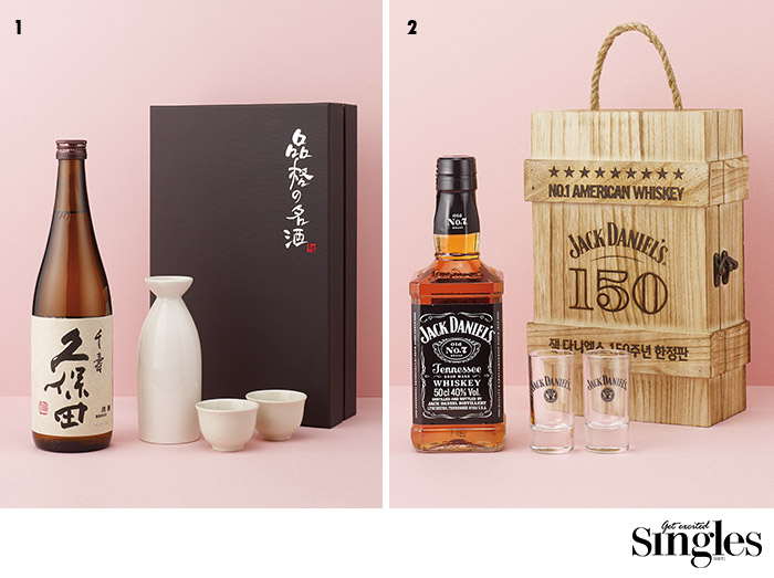 ‘잭콕’으로 잘 알려진 미국의 위스키 잭 다니엘스가 출시 150주년을 맞이해 나무로 만든 단단한 상자 안에 위스키 한 병과 샷 잔 두 개를 넣었다. 그럼에도 불구하고 합리적인 가격을 유지해 소중한 직장 동료나 친구들에게 선물하기 제격이다. 함께 든 샷 잔은 칵테일을 만들 때도 유용하다. 잭콕은 콜라 3에 잭 다니엘스를 1 정도 넣으면 되는 만들기 쉬운 칵테일. 진저에일을 3:1 비율로 섞어도 좋다.
