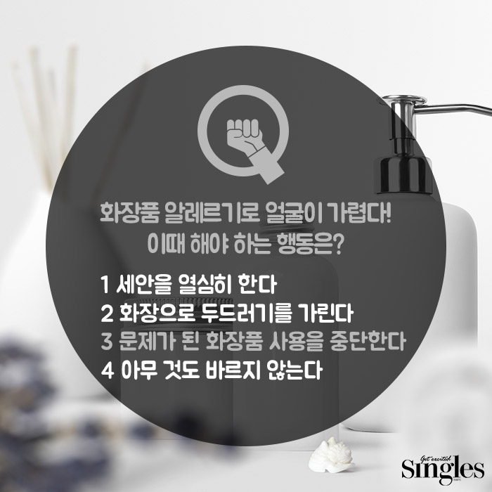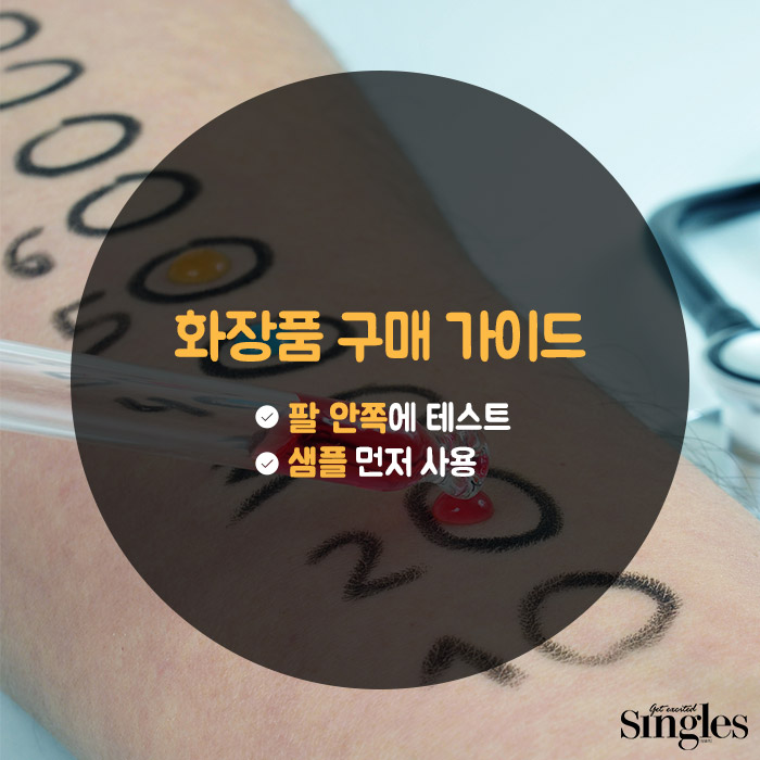 화장품 구매 전 미리 샘플을 사용해 보자. 제품 사용 후 바로 가려움이 느껴질 수도 있고, 2~3일 후에 지연과민반응이 생길 수도 있다. 그러니 최소 3일까지 경과를 지켜본 후 문제가 되지 않는 제품을 선택하는 것이 좋다. 팔 안쪽 부위나 가능하다면 겨드랑이 안쪽에 먼저 발라 알레르기 반응을 살펴보는 것도 필요하다. 요즘은 대부분의 숍에서 구매 전 테스트를 할 수 있기 때문에 피부가 예민한 편이라면 매장 테스트를 먼저 권한다. 병원에서도 피부타입에 따라 화장품을 분석 후 처방해주는 경우가 늘고 있다. 이때 내게 맞지 않는 성분을 기억해뒀다가 제품 구매 시 피하는 것도 좋은 방법이다.