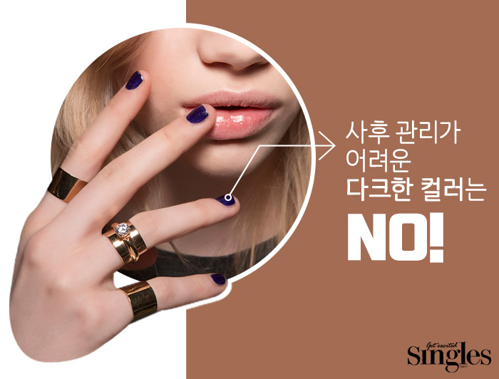 짧은 손톱도 풀 컬러로 바르는 게 더 예쁘다. 맞는 말이다. 하지만 사후 관리가 긴 손톱보다 훨씬 어려우니 문제인 것이다. 보통 어두운 컬러를 가득 채워 바르면 하루 이틀은 정말 예쁘고 깔끔하다. 하지만 얼마 안 가 군데군데 칠이 벗겨지고 만다. 보디가 크고 긴 손톱의 경우라면 파일로 손톱 끝을 다듬거나 잘라내면 그만이지만 짧은 손톱은 손톱에 때가 시커멓게 낀 것처럼 지저분해 보이기 일쑤. 그러면 어떻게 해야 할까? 정 풀 컬러로 바르고 싶다면, 최선의 방법은 네일 컬러를 스킨톤으로 맞추는 것. 며칠 후 벗겨져도 그다지 티가 나지 않기 때문이다.