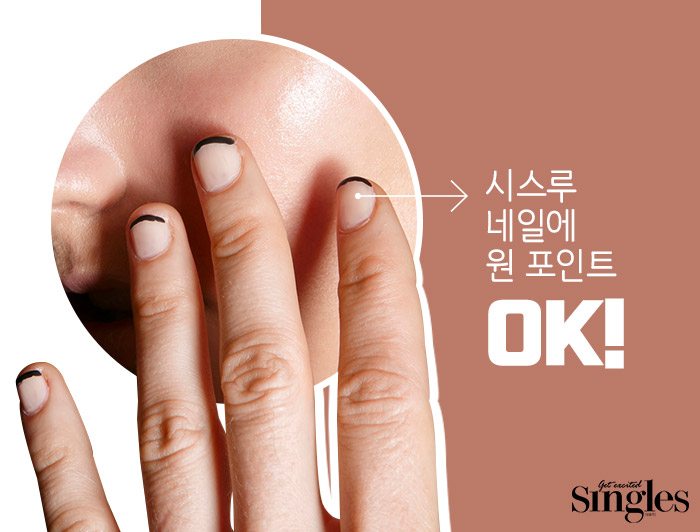 ‘시스루 네일’이 짧은 손톱에 최적화 된 이유는 명확하다. 짧은 손톱을 깔끔하면서도 시원시원하게 보여줄 수 있기 때문이다. 긴 손톱에 ‘시스루 네일’을 하면 빈 공간이 빤히 보이는 바람에 자꾸 뭐라도 더하고, 그리고, 채우고 싶어진다. 라인 하나만 긋자니 어딘가 싱겁다. “짧은 손톱에 투명 매니큐어를 바른 다음 점 하나를 가운데에 톡 찍거나 스마일 라인 근처에 가는 선을 그려보세요.” 네일리스트 윤지희의 추천이다. 단점은 가리고 장점은 살려주니 ‘시스루’와 짧은 손톱은 그야말로 최고의 궁합.