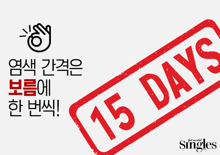 보통의 모발 염색은 적어도 20분 이상 방치해야 염색약이 머리카락 속으로 스며들 수가 있다. 하지만 눈썹은 다르다. 3분에서 최대 5분 동안만 유지하고 절대 5분 이상 놔두어서는 안 된다. 앞서 말한 것처럼 화상을 입을 수 있기 때문. 그렇기 때문에 대부분의 헤어 아티스트들은 옅은 눈썹이거나 눈썹 숱이 없을 경우에는 3분, 눈썹이 진하거나 숱이 많은 경우에는 최대 5분을 권장한다. 한편 포털 사이트에 ‘눈썹 염색’을 검색하면 ‘짱구 눈썹’처럼 본인 눈썹보다 넓게 염색약을 묻히고 있는 사진들을 볼 수 있다. 이유는 눈썹 뿌리에도 고르게 약을 묻게 하기 위함이다. “눈썹 염색을 할 때 약을 조금만 묻히면 뿌리 쪽에는 거의 묻지 않아 보통 양을 좀 넉넉하게 바르는 편이죠.” 파크뷰 칼라빈 헤어 부원장 배욱진의 말이다.