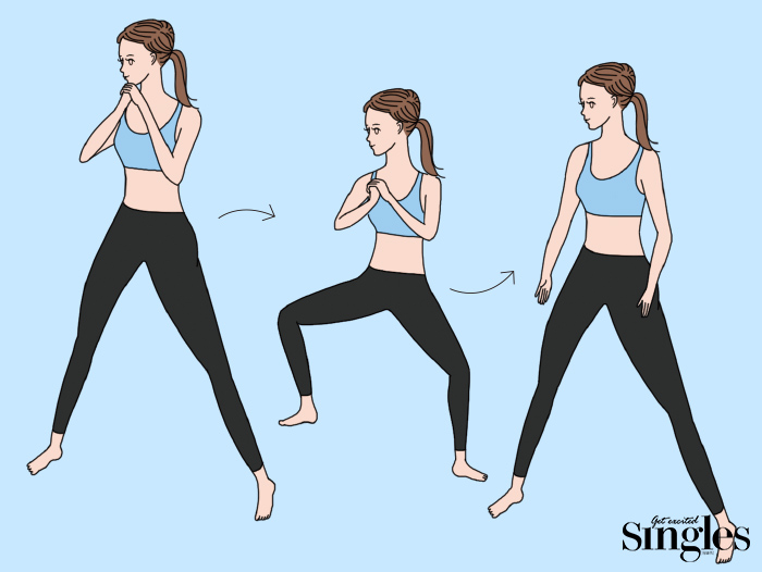 보폭을 넓게 벌린 채로 하는 스쿼트 동작이다. 허벅지 안쪽 근육인 내전근과 엉덩이 대둔근에 자극을 집중시키며, 특히 허벅지 안쪽 살을 빼는 데 효과적이다.