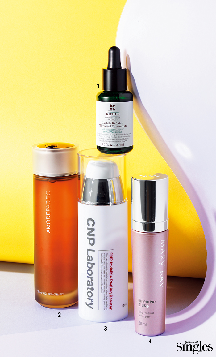 4 메리케이 타임와이즈 플러스+ 실키 리뉴얼 페이셜 필 부드럽게 각질을 정리하고 맑은 피부를 선사하는 셀프 홈 스파 필링 세럼. 30ml 8만원.