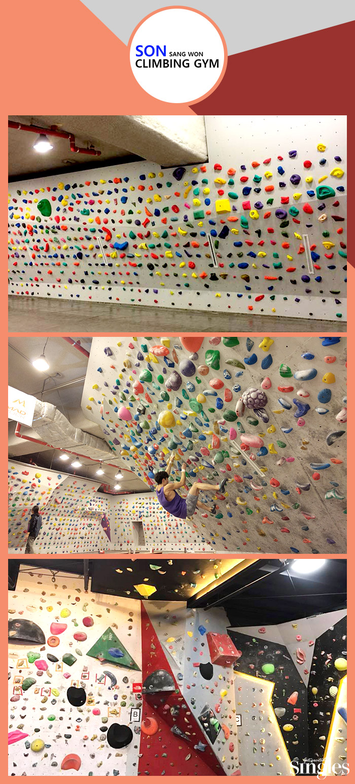 지금도 현역 클라이밍 선수로 꾸준히 활동하는 손상원의 클라이밍 짐. 기초부터 고급까지 꼼꼼하게 강의해 고정회원이 많다. 기초반, 초급반, 중급반, 주말반 등 클래스가 다양하게 나뉘어 있어 실력에 맞게 나눠서 들을 수 있는 게 특징이다.