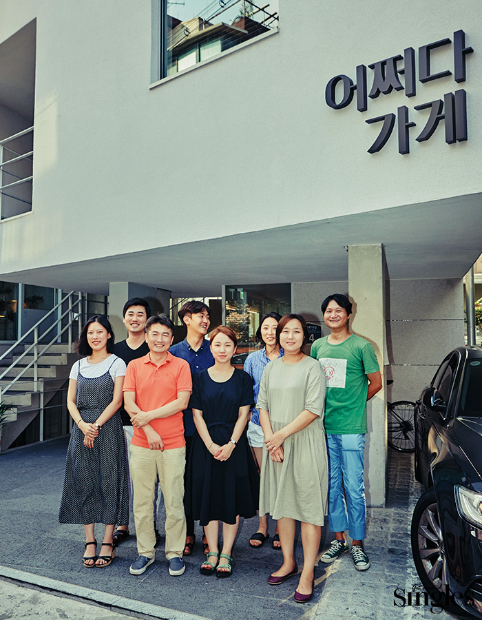 어쩌다가게 망원은 좁은 골목길을 사이에 두고 옆으로 길게 늘어져 있는, 옹기종기 모인 상점들의 옛 풍경에서 영감을 얻었다. “드라마 <응답하라 1988>을 보면 한 골목 안의 여러 식구가 마치 한 가족처럼 지내잖아요. 이곳 역시 어쩌다 모인 가족 같은 거예요.” 건물을 설계한 박 대표의 한 마디에 슬로앤스테디 안 실장은 “어쩌다가게 망원에 모인 사람들과 이야기를 나누다 보면 닮은 점이 무척 많아요. 처음에는 각 상점의 휴일이 제각각이었는데, 언제부터인가 모두 일요일에 맞춰서 쉬더라고요. 가족처럼 닮아가는 거죠”라고 덧붙인다. 사이건축사무소 그리고 공무점은 새로운 ‘어쩌다 프로젝트’를 준비하고 있다. “어쩌다가게 3호점은 물론 갤러리나 주택 등을 어쩌다 형식으로 만드는 방법을 고민하고 있죠.” 공유와 소통을 최고의 가치로 여기는 어쩌다 프로젝트는 현재진행형이다.