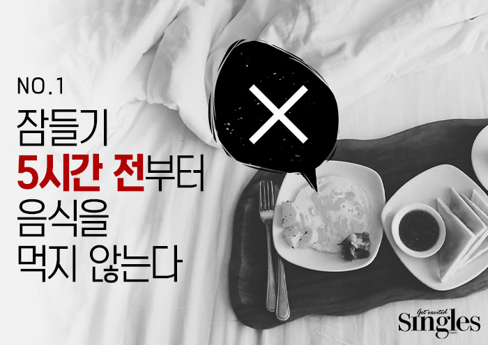 그 이유는 명확하다. 음식이 위에 머무는 시간은 최대 4~5시간이다. 음식이 미처 소화되지 않고 위에 남아 있으면 우리 몸은 소화를 해야 하기 때문에 수면 호르몬인 멜라토닌을 활발히 분비시킬 수 없다. 그러므로 위도 비우고, 숙면을 취하기 위해서는 음식을 섭취한 후 적어도 5시간은 지나야 한다는 것이다. 특히 밥이나 빵, 면 같이 탄수화물과 지방으로 이루어진 음식을 섭취한 후 곧바로 잠에 드는 것은 살이 찌라고 주문을 외우는 격이니 피하는 게 좋다. 소화하는 시간을 단축시키려면 신선한 채소 위주로 가볍게 먹는 것이 중요하다. 고기는 소화하는데 평균 4시간 정도가 걸린다. 소화를 다 시킨 후 일찍 잠자리에 드는 것도 잊어서는 안 된다. 공복감을 길게 느낄 바에야 자는 것이 더 낫다. 게다가 세포가 가장 활발히 재생되는 시간대도 밤 10시에서 새벽 2시 사이 아니던가?