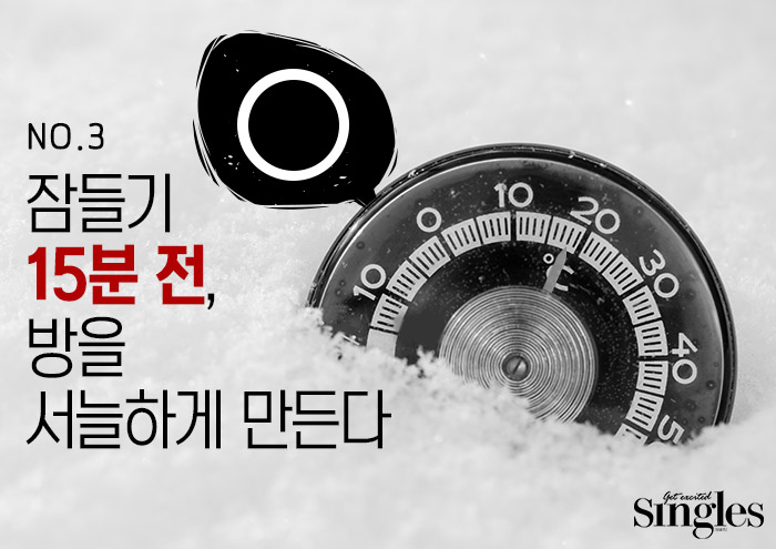 사람들은 몸이나 방 안이 따뜻해야 자면서 살이 더 잘 빠질 것으로 착각하곤 한다. 하지만 이는 명백한 오답! 체온을 유지하기 위해 에너지를 소비하게끔 만드는 것이 오히려 살을 빼는 덴 도움이 된다. 그렇기 때문에 찜질방이나 ‘핫 요가’를 연상케 하는 뜨끈뜨끈한 방에서는 자지 않는 게 좋다. 방의 온도가 높으면 체온 유지를 할 필요가 없기 때문에 에너지를 쓸 일도 없어지기 때문. 그렇다고 ‘얼음골’ 같은 추운 곳에서 잘 필요는 없다. 서늘하고 쾌적한 느낌이 드는 18˚C가 딱이다.