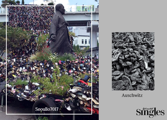 왼쪽 서울로 7017 사진은 아우슈비츠에 쌓여져 있는 신발을 연상시킨다는 평이 많다.