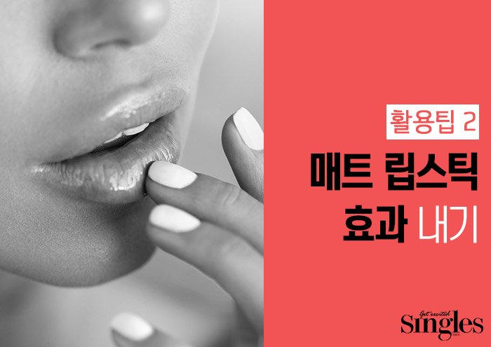 원하는 컬러의 립스틱이 끈적이거나 지나치게 촉촉한 타입이라면? 온 동네 미세먼지가 죄다 내 입술에 들러붙는 것 같아 찝찝한 날, 노세범 파우더의 힘을 빌려보길! 먼저 립스틱을 바른 후 티슈 한 장을 입술 위에 얹어놓자. 그리고는 브러시에 노세범 파우더를 살살 묻힌 다음 티슈 위에 톡톡 두드리면 끝. 번들번들했던 립스틱의 유분기는 사라지지만 속은 촉촉하기 때문에 이보다 더 좋은 매트 립스틱 효과는 없을걸?