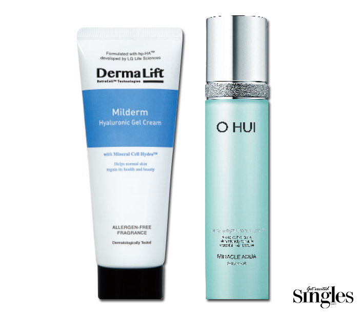 (왼쪽부터) 더마리프트 마일덤 히알루로닉 젤 크림 70ml 3만5000원. 오휘 미라클 아쿠아 에센스 45ml 6만1000원.