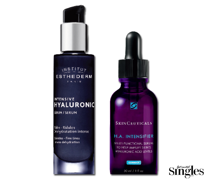 결국 흡수력을 높였다는 말이다. 가장 대표적인 제품이 에스테덤의 세럼. “고분자, 중분자 그리고 캡슐화된 고분자 히알루론산을 3중으로 담아 각각 피부의 다른 층에 작용하게 했어요. 1800kDa(킬로달톤-고분자 측정 단위)의 고분자 히알루론산은 표피에 수분을 공급해 즉각적인 보습 효과를 제공하고, 캡슐화된 고분자 히알루론산은 기저층에 작용해 세포 재생을 촉진시켜 주름을 채우는 역할을 하죠. 250~450kDa의 중분자 히알루론산은 진피에 작용해요.” 일반 히알루론산 분자보다 작은 중분자 히알루론산은 진피층에서 섬유아세포에 의해 생성되는 히알루론산의 합성을 촉진해 피부 밀도를 강화한다. 스킨수티컬즈 역시 일반 히알루론산과 캡슐화된 히알루론산, 잘개 쪼갠 히알루론산을 담아 표면의 보습뿐 아니라 깊숙한 곳까지 히알루론산을 흡수시키는 제품을 출시했다. 결국 얼마나 다양한 크기의 히알루론산을 담아냈냐에 좀더 주목해야 한다는 이야기다.