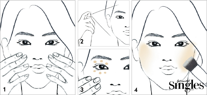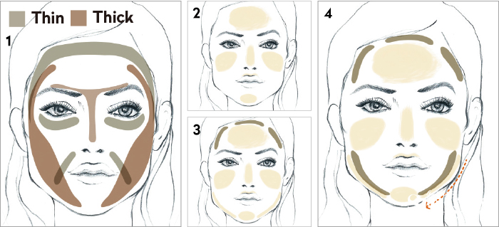 1 피부 조직이 얇은 Thin 구역과 조직이 두꺼운 Thick 구역을 구분해 메이크업할 것. Thin 구역은 한 듯 안 한 듯 얇게 바르고, Thick 구역은 베이스를 바르고 하이라이터를 한 번 더 발라 나와 보이게 표현한다.