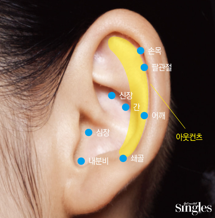 귀를 지압해서 예뻐진다는 것은 허무맹랑한 소리처럼 들린다. 그러나 귀에는 오장육부를 비롯한 신체의 모든 장기와 기관들이 반응하는 200개 이상의 혈자리가 존재한다. 귀를 자극해 인체의 질병을 치료하고 건강을 증진하는 이어테라피는 고대부터 내려온 역사가 깊은 치료법이다. 기원전 고대 의서에서부터 그 흔적을 발견 할 수 있는 이어 테라피는 허준의 <동의보감>에도 관련 기록이 남아있다. 1990년에 세계보건기구(WHO)는 외이의 특정 지점을 자극하면 그 지점과 신경학적으로 연결된 부위에 반응이 생기는 이어테라피를 질병 치료의 한 방법으로 받아들이기도 했다. 이어테라피의 미용학적 효과가 대중적으로 각광 받기 시작한 것은 미디어에 노출되면서부터다. 귀에 뭔가를 붙인 셀럽들이 등장하고, 뷰티 프로그램에서 다루며 이어테라피의 경락 자극 효과가 알려졌다. “귀에는 안면신경부터 자율신경까지 다양한 신경이 연결되어 있어요. 귀를 자극해 신진대사를 원활히 하고, 안면 근육을 풀어줄 수 있죠.” 뷰티이혈협회장 박애란의 말이다. 최근 뷰티 이혈테라피는 부기 완화에서부터 피부 개선, 리프팅, 식욕 억제 등으로 적용 범위를 넓히고 있다. 귀에 무언가를 동여매거나 날카로운 침을 찔러야 했던 시술 방법에서 피어싱 모양의 크리스털 침을 붙이거나 셀프로 지압할 수 있는 제품이 등장하는 등 이어테라피를 쉽게 할 수 방법도 대중화 되었다. 김인호 한의학 박사는 꾸준히 펜으로 혈자리를 눌러주거나 쌀알을 반창고로 붙이는 것만으로도 충분한 지압 효과를 볼 수 있다고 말한다. 별다른 도구가 필요 없고 약물요법 등과 달리 누구나 따라 해도 부작용이 없는 귀 지압, 3분씩만 따라 해서 쉽고 간단히 예뻐지자.