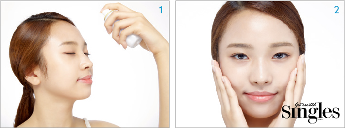 1 얼굴에 고르게 분사될 수 있도록 45도 각도 30cm의 거리에서 1~2회 분사한다.