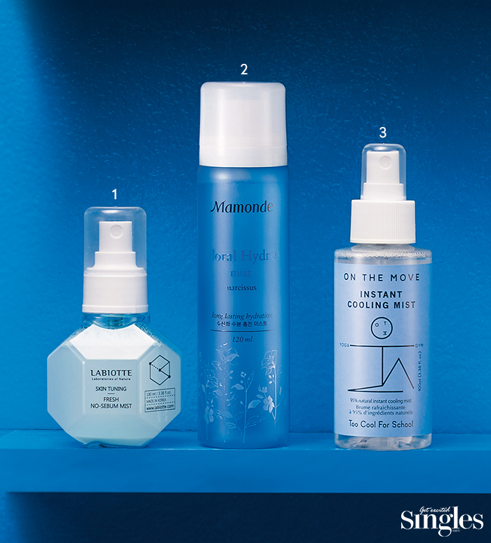 오후에는 에어컨 바람이나 자외선 때문에 피부 속은 건조한데 유분이 올라와 번들거리는 경우가 많다. 이럴 때 흡수가 빠르고 보송하게 마무리되는 미스트를 사용하면 속건조와 번들거림이 한 번에 해결된다. 초미세입자로 분사되는 마몽드의 제품은 피부에 즉각 수분을 공급해 유수분 밸런스를 맞춰준다. 투쿨포스쿨과 라비오뜨의 제품에는 파우더가 함유되어 수분 공급과 동시에 피부를 보송보송하게 만든다. 미처 흡수되지 못한 미스트가 증발하며 피부 수분도 함께 앗아가 더 건조해질 수 있으니 적당량을 뿌리고 살짝 두드려 흡수시키는 것이 좋다.