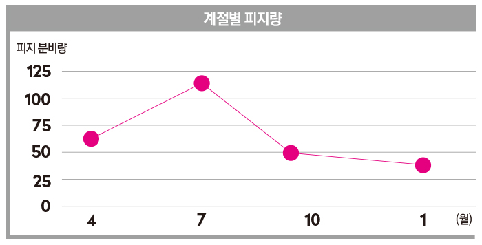하루 종일 유분을 닦아내도 번들거리는 피지를 걷잡을 수 없다고 느낀 지 며칠 지나지 않아 그로 인해 넓어진 모공과 볼록 올라온 빨간 뾰루지를 만나게 된다. 6월에서 8월 사이 피지량이 절정에 달하는 이유는 아무래도 조금만 움직여도 흐르는 땀과 높은 온도로 인해 달아오른 피부열이 주원인. 피부 표면이 바싹 마르면서 피부 속의 수분은 땀으로 배출돼버리니 그 건조함으로 인해 피부는 유분을 스스로 만들어낸다. 이러한 피지가 모공을 막을 경우 새로 만들어진 유분이 제대로 빠져나오지 못한다. 이 유분이 갇히면서 블랙헤드, 화이트헤드가 생겨나고 이것이 박테리아, 각질세포와 만나 염증성 여드름으로 변한다. 혹은 과도한 유분이 배출되면서 모공 입구가 늘어지기에 피지 흡착, 모공 타이트닝 효과가 있는 토너로 추가 클렌징 과정이 필수적이다.