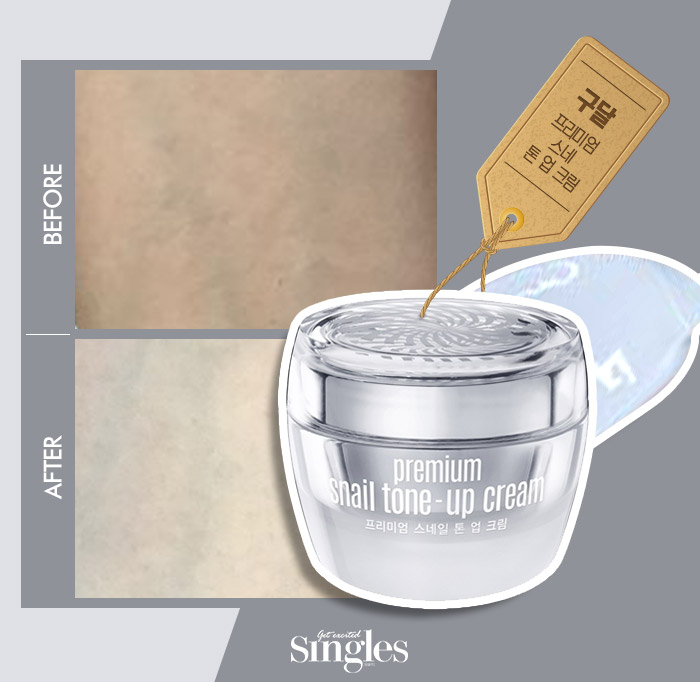 생크림처럼 하얗고 부드러운 제형의 톤업 크림. 바르기도 전에 부담감부터 생기지만 막상 발라보면 흡수력도 빠르고 생각보다 백탁 현상이 심하지 않아 자연스럽다. 수분감이 없는 경우 자칫 뻑뻑하거나 흡수하는 데 오랜 시간이 걸릴 수 있지만, 구달의 톤업 크림은 달팽이 추출물이 들어있어 수분 뿐만 아니라 영양감도 챙겼다. 티타늄디옥사이드가 전성분 중 7번째로 적혀 있다. 50ml 4만2000원.