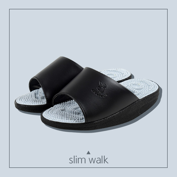 걸을 때 발 뒤꿈치부터 닿는 게 건강한 걸음걸이라는 건 누구나 안다. 그렇지만 습관을 들이기는 쉽지 않다. 그래서 ‘칸토스’는 슬리퍼의 바닥을 둥그스름하게 만들었다. 덕분에 슬리퍼만 신어도 자연스럽게 발 뒤쪽부터 앞으로 걷게 되는 게 특징. 걸을 때 발 앞쪽부터 뒤쪽까지 전체를 쓰기 때문에 다리 곳곳의 근육을 골고루 써서 균형 잡힌 다리 라인을 만들 수 있다. 슬리퍼 바닥에 돌기가 있어 혈액순환까지 도와주는 건 덤.