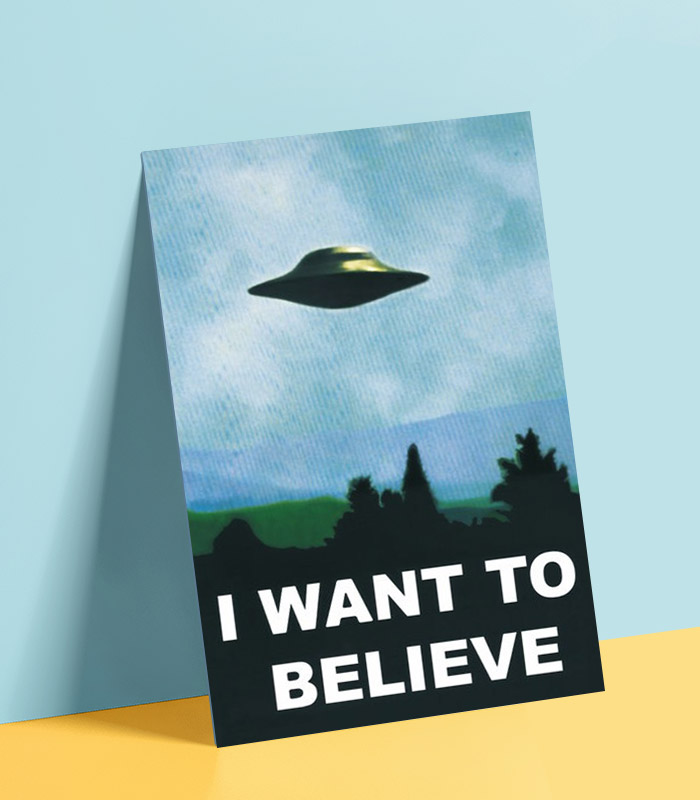 서로의 취향을 인정한다는 건 사귀는 사이에도 쉬운 일이 아니다. 이해와 함께 용기가 필요하기 때문. 이럴 때 가장 좋은 게 바로 외계인과 UFO 이야기. 황당한 단어로 가득한 아무 말 대잔치를 벌이다 보면 어느새 금방 가까워진 두 사람의 관계를 느낄 수 있을 거다. 미국 드라마로 잘 알려져 있지만 영화로도 만들어져 성공한 <엑스파일>은 외계인과 UFO는 물론 좀처럼 믿을 수 없는 신기한 이야기로 가득한 작품이다. 포스터 속 장면 역시 드라마와 영화의 시작 부분에 빠지지 않고 등장한다. ‘이 사람 믿어도 될까?’ 싶을 정도로 의심스러울 땐 이 포스터 앞에 남자를 세워보자. 자기도 모르게 술술 자백을 할지도 모르니까.